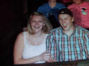 We get to go out on dates about every month on the 12th usually.. haha so it was really nice to just get away from school and work and friends and just be by ourselves (without counting all the Disneyland goers). We started at california adventure just wandering around because I am apparently horrible at knowing where that bear trail was and then we eventually got to the little finding nemo show thing. After that, we went on tower of terror and for some reason I was scared to death?! I forgot the first initial drop happens, so drew was teasing me that it was going to drop and it did…so incidentally I screamed my head off! Here’s the (Lovely =/ ) picture: