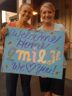 | Kayla and I made Emily a ‘Welcome Home’ sign |
